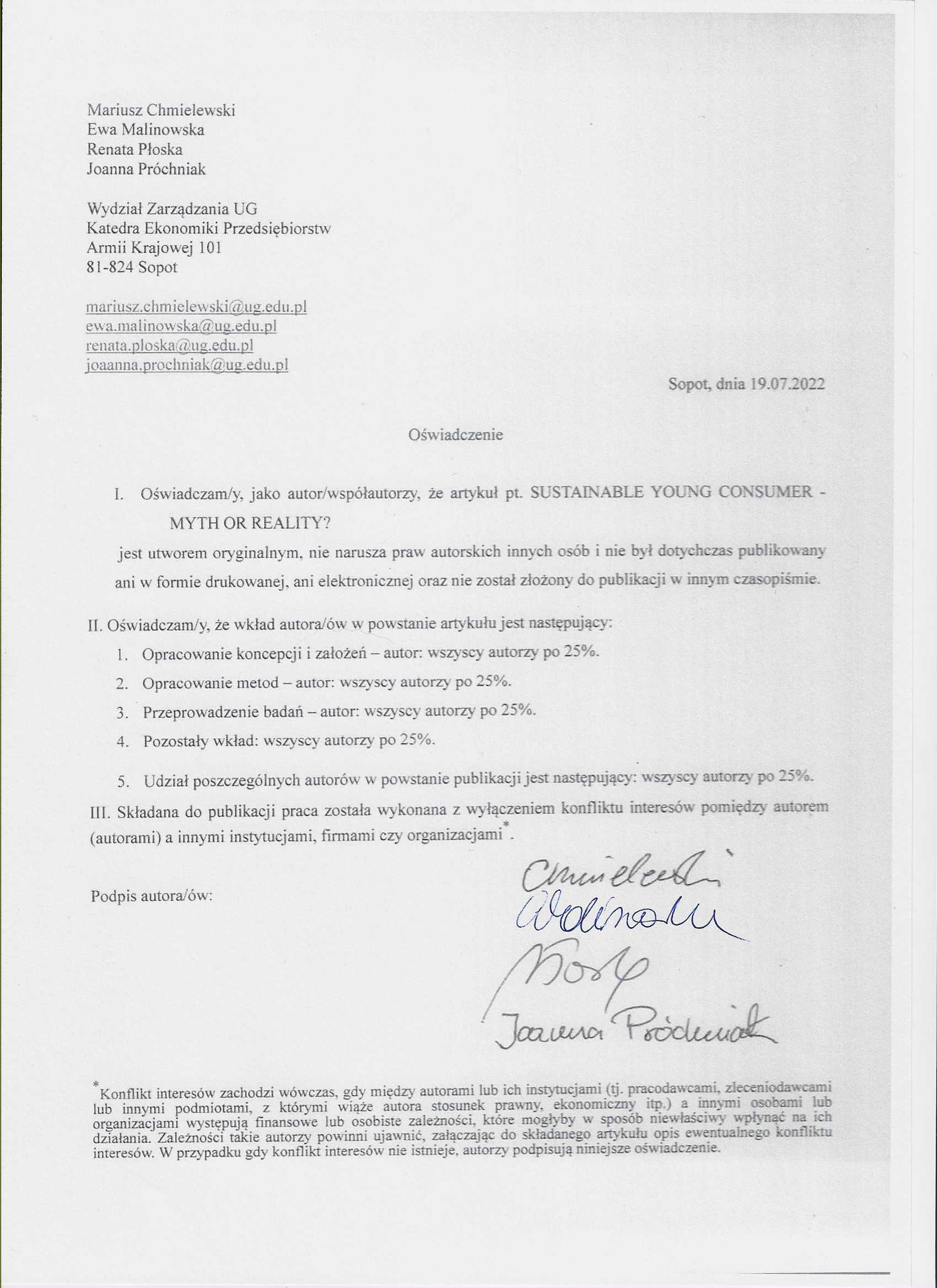 Rahman O., Koszewska M. (2020), A Study of Consumer Choice between Sustainable and Non-sustainable Apparel Cues in Poland, “Journal of Fashion Marketing and Management”, vol. 24(2), https://doi.org/10.1108/JFMM-11-2019-0258. DOI: https://doi.org/10.1108/JFMM-11-2019-0258